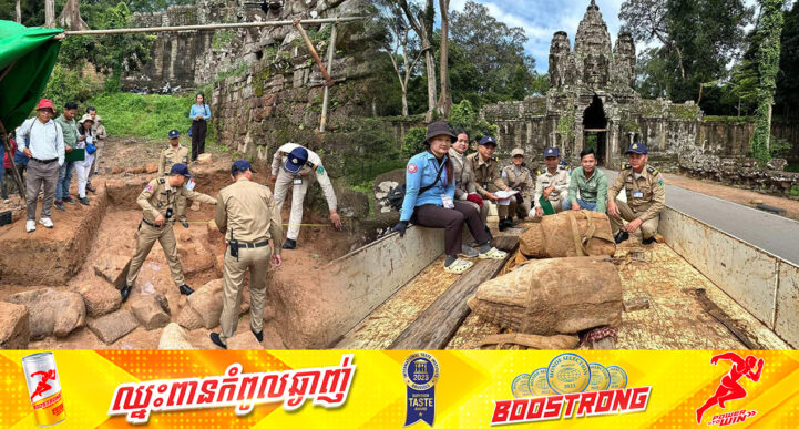 ខេត្តសៀមរាប៖ យោងតាមការចុះផ្សាយរបស់ នាយកដ្ឋាននគរបាលការពារបេតិកភណ្ឌ បានឱ្យដឹងថា កាលពីព្រឹកទី១៦ ខែកញ្ញា ឆ្នាំ២០២៤ កម្លាំងអង្គភាពនគរបាលការពារបេតិកភណ្ឌប្រចាំតំបន់អង្គរ បានសហការជាមួយភ្នាក់ងារជំនាញអាជ្ញាធរជាតិអប្សរា ចុះទៅខ្លោងទ្វារជ័យ ស្ថិតក្នុងភូមិស្រះស្រង់ខាងត្បូង សង្កាត់នគរធំ ក្រុង/ខេត្តសៀមរាប ដើម្បីធ្វើការប្រគល់-ទទួល ព្រះកេសទេវតាទាញព្រ័ត្រចំនួន០២ ធ្វើពីថ្មភក់ ដែលក្រុមកំណាយស្រាវជ្រាវ និងជួសជុលរបស់អាជ្ញាធរជាតិអប្សរាប្រទះឃើញ នៅចំណុចខាងកើតខ្លោងទ្វារ ជាប់ខាងត្បូងស្ពានហាល ចន្លោះរូបទី៤១.៤២ រាប់ពីកើតមកលិច ក្នុងជម្រៅដី៦៣ស.ម ។ ព្រះកេសទាំង២ខាងលើលោក អន សុភាព ប្រធានក្រុមកំណាយ បានប្រគល់ឲ្យលោក ឈូក សុម៉ាឡា ប្រធានក្រុមចុះបញ្ជីវត្ថុសិល្បៈ នៃនាយកដ្ឋានអភិរក្សប្រាសាទ និងបុរាណវិទ្យា