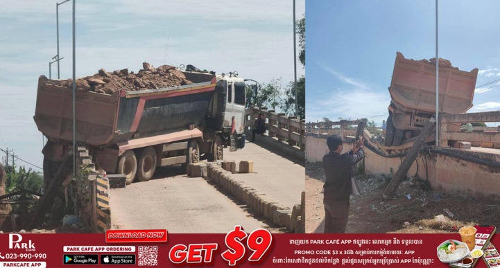 ខេត្តកណ្ដាល៖ ស្ពានព្រែកកុងវាន់ រងការខូចខាតធ្ងន់ធ្ងរ ដោយសារការដឹកធ្ងន់លើសទម្ងន់ ឡើងស្ពានមិនរួច ក៏រអិលថយក្រោយវិញ ទៅបុករបាំងថ្មពុះចែកទ្រូងផ្លូវ ហើយបន្តទៅបុកបង្កាន់ដៃស្ពានបាក់អស់ជាច្រើនទៀត កល់ជាប់រថយន្តទទឹងស្ពានតែម្ដង បង្កការកកស្ទះចរាចរណ៍យ៉ាងខ្លាំងដល់អ្នកធ្វើដំណើរ។ ហេតុការណ៍គ្រោះថ្នាក់ចរាចរណ៍នេះបានបង្កការភ្ញាក់ផ្អើលឡើង កាលណីវេលាម៉ោង១២ថ្ងៃត្រង់ ថ្ងៃព្រហស្បតិ៍ ទី១២ ខែសីហា ឆ្នាំ២០២១នេះ នៅចំណុចស្ពានព្រែកកុងវាន់ ស្ថិតក្នុងភូមិអញ្ជាញក្រោម ឃុំពុកឬស្សី ស្រុកខ្សាច់កណ្តាល ខេត្តកណ្តាល។ បើតាមសមត្ថកិច្ចបានប្រាប់ឲ្យដឹងថា ខាងជំនាញមន្ទីរសាធារណការ និងដឹកជញ្ជូនខេត្តកណ្តាល សហការជាមួយអាជ្ញាធរអធិការដ្ឋានស្រុកខ្សាច់កណ្តាល បានចាប់ឃាត់រថយន្តដឹកដីធុនធំមួយគ្រឿង ប្រភេទយីឌុប (ភ្លៅ៤ កង់១២) បន្ទាប់ពីដឹកធ្ងន់ បើកឡើងស្ពានមិនរួច ក៏រអិលថយក្រោយ បុកបាក់បង្កាន់ដៃស្ពានព្រែកកុងវាន់ បណ្ដាលឲ្យខូចខាតប្រវែង