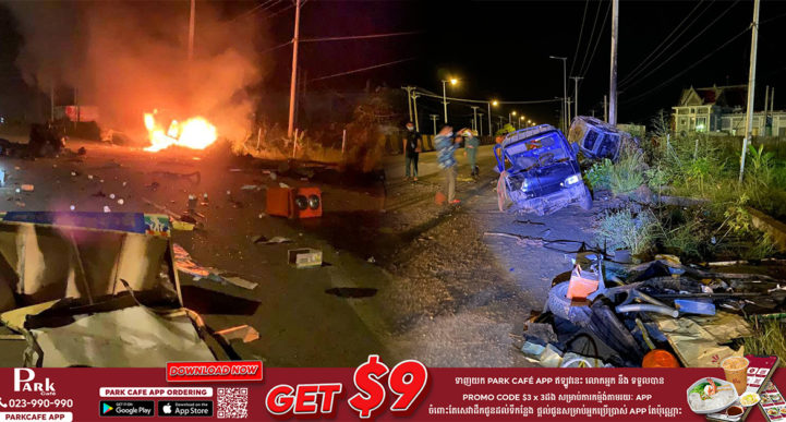 ខេត្តកណ្ដាល៖ ស្ដែងៗណាស់! រថយន្តស៊េរីទំនើប មួយគ្រឿង ម៉ាក LEXUS NX200t ក្រឡាប់បោកផ្ទប់បង្គោលភ្លើង ផ្ទុះឆេះយ៉ាងសន្ធោសន្ធៅ បន្ទាប់ពីបើកបោះពួយក្នុងល្បឿនលឿន ទៅបុករថយន្តកូរ៉េ លក់ការ៉េម កំពុងបើកបត់ត្រលប់ក្រោយ ពេញទំហឹង ប៉ើងក្រឡាប់ជាច្រើនជុំ បុកបាក់បង្គោលភ្លើង ១ដើម ហើយខ្ទាតបោកក្រឡាប់ផ្ងារជើងម្ខាងផ្ទប់នឹងបង្គោលខ្សែភ្លើង ត្រូវបានប្រជាពលរដ្ឋវាយបំបែកកញ្ចក់ជួយសង្គ្រោះយកចេញក្រៅបានបន្តិចស្រាប់តែរថយន្តផ្ទុះឆេះតែម្ដង ចំណែកប្ដីប្រពន្ធ២នាក់ខាងរថយន្តលក់ការ៉េមរងរបួសធ្ងន់ ក៏ត្រូវបានប្រជាពលរដ្ឋ ជួយដឹកបញ្ជូនទៅមន្ទីរពេទ្យបាត់ទៅ ទើបរាយការណ៍ប្រាប់សមត្ថកិច្ចមូលដ្ឋាន ហៅរថយន្តពន្លត់អគ្គិភ័យចេញជួយអន្តរាគមន៍។ ហេតុការណ៍គ្រោះថ្នាក់ចរាចរណ៍នេះបានកើតឡើងកាលពីវេលាម៉ោង៨៖៤០នាទីយប់ ថ្ងៃចន្ទ ទី០៩ ខែសីហា ឆ្នាំ២០២១នេះ នៅត្រង់ចំណុចមុខច្រកចូល បុរីសុភមង្គល ស្ថិតនៅតាមបណ្ដោយផ្លូវ២១B ភូមិទួលក្រសាំង សង្កាត់រកាខ្ពស់