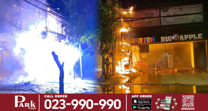 រាជធានីភ្នំពេញ ៖ អគ្គិភ័យមួយផ្ដើមចេញមកពីឆ្លងចរន្តអគ្គិសនីពីទូរអេធីអឹម (ATM) របស់គ្រឹះស្ថានមីក្រូហិរញ្ញវត្ថុ ប្រាសាក់ ឆាបឆេះរាលដាលដល់ហាងលក់ភីហ្សា Pezzo និងហាងលក់នំដូណាត់ “Big Apple & Donuts” និងហាងលក់តៃគុជ “Peaeh Tea” បង្កការភ្ញាក់ផ្អើលដល់ប្រជាពលរដ្ឋរាយការណប្រាប់សមត្ថកិច្ចហៅរថយន្តពន្លត់អគ្គិភ័យ មកជួយអន្តរាគមន៍ និងជួយសង្គ្រោះមនុស្សបាន២នាក់ ។ ករណីអគ្គិភ័យនេះបានកើតឡើងកាលពីវេលាម៉ោង០១:១៥នាទីយប់រំលងអាធ្រាត្រ ឈានចូលថ្ងៃពុធ ទី២៨ ខែកក្កដា ឆ្នាំ២០២១ នៅចំណុចទូរម៉ាស៊ីនអេធីអឹម(ATM)ទី១២៨ របស់គ្រឹះស្ថានមីក្រូហិរញ្ញវត្ថុ “ប្រាសាក់” ស្ថិតនៅខាងមុខហាង “Big Apple & Donuts” ជាប់ហាងភីហ្សា