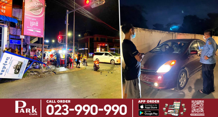 រាជធានីភ្នំពេញ៖ រថយន្ត PRUIS មួយគ្រឿង បើកឆ្លងកាត់ផ្លូវបំបែកជាបួន គេចពីរថយន្តកុងតឺន័រធុនធំដែលបើកបំពានស្តុប ក៏ជ្រុលទៅបុកចំម៉ូតូ Nex ទាំងកំរោល រុញផ្ទប់និងបង្គោលស្លាកឈ្មោះវត្តទ្រេតដល់ដី បណ្ដាលឲ្យយុវជនម្នាក់កៀបជាប់ម៉ូតូ រងរបួសយ៉ាងទម្ងន់ ចំណែករថយន្តបង្កមិនព្រមឈប់ទទួលខុសត្រូវទេ បានព្យាយាមបើករត់ បានជិត១គីឡូម៉ែត្រ ត្រូវសមត្ថកិច្ចឃាត់បានដដែល។ ហេតុការណ៍គ្រោះថ្នាក់ចរាចរណ៍នេះកើតឡើងកាលពីវេលាម៉ោង១០៖៥០នាទីយប់ នៅចំណុចស្តុបទល់មុខស្នាក់ការប៉ុស្តិ៍ និរោធ ផ្លូវបំបែកជាបួន លើផ្លូវជាតិលេខ១ កែងផ្លូវ៣៥១ ភូមិតាង៉ូវកណ្ដាល សង្កាត់និរោធ ខណ្ឌច្បារអំពៅ រាជធានីភ្នំពេញ។ សមត្ថកិច្ចនគរបាលខណ្ឌច្បារអំពៅ បានឲ្យដឹងថា ភាគីខាងរថយន្តម៉ាកតូយ៉ូតាព្រូស(TOYOTA PRIUS) ពណ៌ក្រហម ពាក់ស្លាកលេខភ្នំពេញ 2AM-6023 បើកបរដោយបុរសមិនស្គាល់អត្តសញ្ញាណម្នាក់