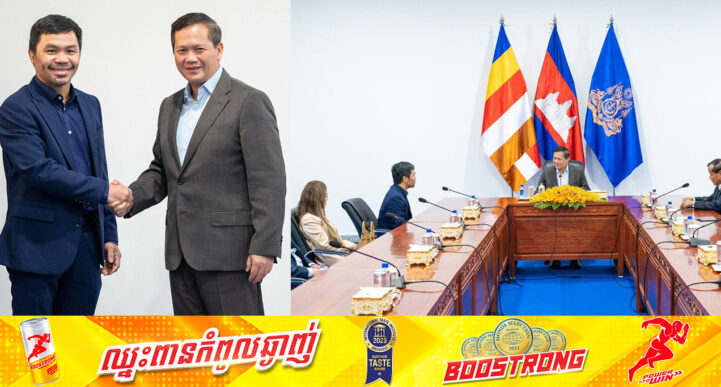 រាជធានីភ្នំពេញ៖ យោងតាមការចុះផ្សាយរបស់ ទីភ្នាក់ងារសារព័ត៌មានកម្ពុជា បានឱ្យដឹងថា សម្តេចមហាបវរធិបតី ហ៊ុន ម៉ាណែត នាយករដ្ឋមន្រ្តី នៃព្រះរាជាណាចក្រកម្ពុជា នារសៀលថ្ងៃទី៣០ ខែឧសភា ឆ្នាំ២០២៤នេះ បានអនុញ្ញាតឱ្យលោក ម៉ានី ប៉ាគីអាវ (Manny Pacquiao) កំពូលកីឡាករប្រដាល់កម្រិតពិភពលោក និងជាអតីតសមាជិកព្រឹទ្ធសភា នៃសាធារណរដ្ឋហ្វីលីពីន ចូលជួបសម្តែងការគួរសម និងពិភាក្សាការងារ នៅវិមាន៧មករា។ ក្នុងឱកាសនៃជំនួប លោក ម៉ានី ផាគីអាវ បានថ្លែងអំណរគុណយ៉ាងជ្រាលជ្រៅចំពោះ សម្តេចធិបតី ដែលបានចំណាយពេលដ៏មមាញឹកអនុញ្ញាតឱ្យរូបលោក និងគណៈប្រតិភូ ចូលជួបសម្ដែងការគួរសម និងពិភាក្សាការងារ ព្រមទាំងបានសម្តែងនូវក្តីរីករាយដែលលោកបានចូលរួមជាមួយព្រះរាជាណាចក្រកម្ពុជា