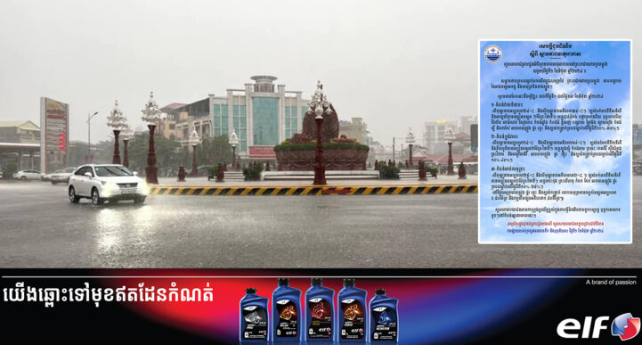 រាជធានីភ្នំពេញ៖ យោងតាមការចុះផ្សាយរបស់ ក្រសួងធនធានទឹក និងឧតុនិយម បានចេញសេចក្ដីជូនដំណឹង អំពីស្ថានភាពធាតុអាកាសនៅព្រះរាជាណាចក្រកម្ពុជាសម្រាប់ថ្ងៃទី១ ខែមិថុនា ឆ្នាំ២០២៤។ ក្រសួងធនធានទឹក បានឱ្យដឹងថា សម្ពាធទាបគ្របដណ្ដប់លើព្រះរាជាណាចក្រកម្ពុជា ភាគខាងជើងប្រទេសថៃ ភាគកណ្ដាលនៃអាងទន្លេមេគង្គ និងសមុទ្រចិនខាងត្បូង។ ស្ថានភាពបែបនេះនឹងធ្វើឱ្យចាប់ពីថ្ងៃទី១ ដល់ថ្ងៃទី៣ ខែមិថុនា ឆ្នាំ២០២៤៖ ១-តំបន់វាលទំនាប៖ -សីតុណ្ហភាពអប្បបរមា២៤°C និងសីតុណ្ហភាពអតិបរមា៣៤°C។ ខ្យល់បក់មកពីទិសនិរតី និងអាគ្នេយ៍មានល្បឿនមធ្យម ២ម៉ែត្រ/វិនាទី។ ខេត្តបាត់ដំបង បន្ទាយមានជ័យ ឧត្តរមានជ័យ ប៉ៃលិន ពោធិ៍សាត់ សៀមរាប កំពង់ឆ្នាំង កំពង់ធំ ភ្នំពេញ កណ្តាល