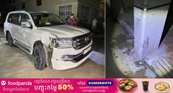 រាជធានីភ្នំពេញ ៖ ស្ត្រីម្នាក់បើករថយន្ត LAND CRUISER ស្រាប់តែកូនស្រីតូចដែលមានអាយុប្រមាណ៣ខួប អង្គុយនៅខាងមុខជាម្ដាយ លូកដៃទាញចង្កូតរថយន្ត បណ្ដាលឲ្យរេចង្កូតទៅខាងស្ដាំដៃបុកបង្គោលភ្លើងថ្មតែម្ដង តែមិនបណ្ដាលឲ្យនរណាម្នាក់រងរបួសនោះទេ ខូចខាតរថយន្តផ្ទុះបែកកង់មុខខាងស្ដាំលាន់ដូចរន្ទះប៉ុណ្ណោះ ។ ហេតុការណ៍គ្រោះថ្នាក់ចរាចរណ៍នេះកើតឡើងនៅវេលាម៉ោង០៨:៣០នាទីយប់ ថ្ងៃព្រហស្បតិ៍ ទី២៤ ខែមិថុនា ឆ្នាំ២០២១នេះ នៅចំណុចម្ដុំផ្ទះល្វែង(ច្រកផ្សារក្រមួន) ផ្លូវបេតុងលេខ២១ កែងផ្លូវបេតុងលេខ២៨ ភូមិព្រែកតាឡុង១ សង្កាត់ចាក់អង្រែក្រោម ខណ្ឌមានជ័យ រាជធានីភ្នំពេញ ។ រថយន្តបង្កម៉ាកឡង់គ្រីស័រ(LAND CRUISER) ស៊េរីឆ្នាំ២០១៦ ពណ៌ស ពាក់ស្លាកលេខភ្នំពេញ 2AW-2868 បើកបរដោយស្ត្រីម្នាក់ និងមានកូនស្រីតូច២នាក់ទៀតរួមដំណើរជាមួយ ។