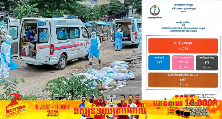 នៅថ្ងៃទី២៣ ខែមិថុនា ឆ្នាំ២០២១នេះ ក្រសួងសុខាភិបាលកម្ពុជា បានចេញសេចក្តីជូនដំណឹងពី ការរកឃើញករណីវិជ្ជមានវីរុសកូវីដ១៩ថ្មី ចំនួន ៥៨៧នាក់ ខណៈអ្នកបានជាសះស្បើយថ្មីមានចំនួន ៥៤៨នាក់ និងមានអ្នកបាត់បង់ជីវិត១៦នាក់។ គិតមកទល់ពេលនេះ ករណីឆ្លងកូវីដ១៩ សរុបនៅក្នុងប្រទេសកម្ពុជា មានចំនួន ៤៤,៧១១នាក់, ករណីជាសះស្បើយសរុប ៣៩,៣១៤នាក់ និងស្លាប់សរុប ៤៧៥នាក់៕