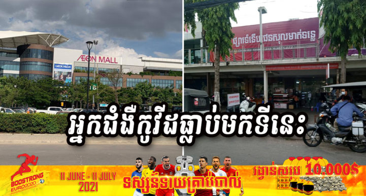 យោងតាមការបញ្ជាក់ពី អនុគណៈកម្មការស្រាវជ្រាវជំងឺកូវីដ១៩ បានឲ្យដឹងថា សូមពាក់ម៉ាស់ រក្សារគម្លាត ឧស្សាហ៍លាងដៃ គ្រប់ទីកន្លែង គ្រប់ពេលវេលា ដើម្បីសុវត្ថិភាព!! សូមអំពាវនាវដល់ប្រជាពលរដ្ឋ ដែលបានទៅទីតាំង២កន្លែងខាងក្រោមនេះ៖ ទី១- តូប G182 នៃផ្សារទំនើប ផេនសុលមាត់ទន្លេ ដែលមានទីតាំងស្ថិតនៅផ្លូវព្រះស៊ីសុវត្ថិ សង្កាត់ចតុមុខ ខណ្ឌដូនពេញ ចាប់ពីថ្ងៃទី ០៨ ដល់ថ្ងៃទី ១៤ ខែមិថុនា ឆ្នាំ២០២១ ដោយមូលហេតុ៖ អ្នកជំងឺកូវីដ១៩ តែងតែទៅជួយរៀបចំអីវ៉ាន់ប្រពន្ធនៅម៉ោង ៦ ល្ងាច នៅទីតាំងខាងលើនេះ។ ទី២- ផ្សារទំនើប AEON