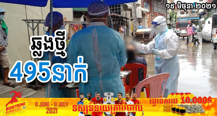 នៅថ្ងៃទី១៥ ខែមិថុនា ឆ្នាំ២០២១នេះ ក្រសួងសុខាភិបាលកម្ពុជា បានចេញសេចក្តីជូនដំណឹងពី ការរកឃើញករណីវិជ្ជមានវីរុសកូវីដ១៩ថ្មី ចំនួន ៤៩៥នាក់ ខណៈអ្នកបានជាសះស្បើយថ្មីមានចំនួន ៦០៤នាក់ និងមានអ្នកបាត់បង់ជីវិត១៣នាក់។ គិតមកទល់ពេលនេះ ករណីឆ្លងកូវីដ១៩ សរុបនៅក្នុងប្រទេសកម្ពុជា មានចំនួន ៣៩,៤៦៤នាក់, ករណីជាសះស្បើយសរុប ៣៤,៥៧១នាក់ និងស្លាប់សរុប ៣៦១នាក់៕