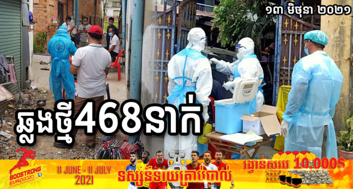 នៅថ្ងៃទី១៣ ខែមិថុនា ឆ្នាំ២០២១នេះ ក្រសួងសុខាភិបាលកម្ពុជា បានចេញសេចក្តីជូនដំណឹងពី ការរកឃើញករណីវិជ្ជមានវីរុសកូវីដ១៩ថ្មី ចំនួន ៤៦៨នាក់ ខណៈអ្នកបានជាសះស្បើយថ្មីមានចំនួន ៦៣៦នាក់ និងមានអ្នកបាត់បង់ជីវិត១៥នាក់។ គិតមកទល់ពេលនេះ ករណីឆ្លងកូវីដ១៩ សរុបនៅក្នុងប្រទេសកម្ពុជា មានចំនួន ៣៨,៤២៧នាក់, ករណីជាសះស្បើយសរុប ៣១,៨៥៨នាក់ និងស្លាប់សរុប ៣៣៥នាក់៕