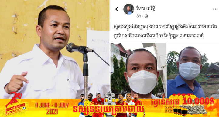 (ភ្នំពេញ)៖ យោងតាមគណនីហ្វេសប៊ុកផ្ទាល់របស់ លោក ហែម ដារិទ្ធ អភិបាលខណ្ឌពោធិ៍សែនជ័យ បានឲ្យដឹងថា នៅថ្ងៃទី០៨ ខែមិថុនា ឆ្នាំ២០២១ លោកបានបញ្ជាក់ថា លោកមានវិជ្ជមានជំងឺកូវីដ១៩ និងកំពុងសម្រាកព្យាបាលនៅផ្ទះ។ សូមបញ្ជាក់ផងដែរថា លោក ហែម ដារិទ្ធ ត្រូវបានមន្ត្រីសុខាភិបាលរកឃើញវិជ្ជមានជំងឺកូវីដ១៩ កាលពីថ្ងៃទី០៧ ខែមិថុនា ឆ្នាំ២០២១ ម្សិលមិញ ប៉ុន្តែស្ថានភាពសុខភាពរបស់លោក គឺមិនមែនអ្វីធ្ងន់ធ្ងរនោះទេ បច្ចុប្បន្ននេះ លោកកំពុងសម្រាកព្យាបាលជំងឺនៅផ្ទះរបស់លោក។ ការរកឃើញវិជ្ជមានជំងឺកូវីដ១៩លើលោក ហែម ដារិទ្ធ នេះ មិនទាន់អាចបញ្ជាក់ថា លោកឆ្លងតាមរយៈបុគ្គលណាមួយនោះទេ តែកន្លងមកលោកតែងតែដឹកនាំក្រុមការងារចុះសួរសុខទុក្ខ និងចែកអំណោយដល់ប្រជាពលរដ្ឋ