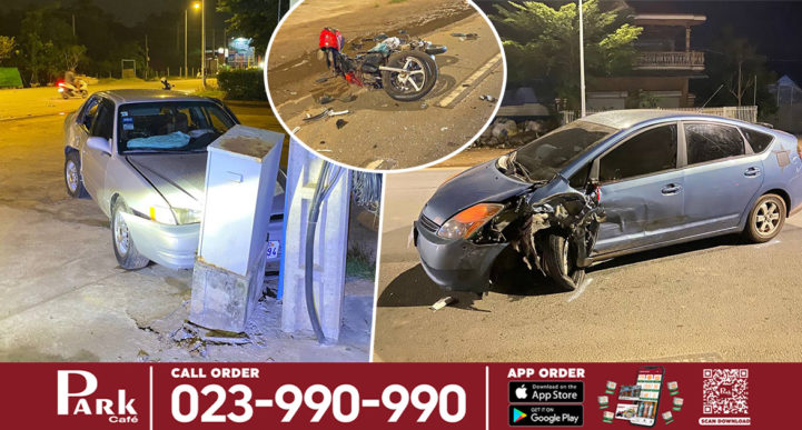 រាជធានីភ្នំពេញ ៖ ស្ដែងៗណាស់! រថយន្ត TOYOTA PRIUS ដែលបិទ Sticker “CPC – Cambodia Prius Club” បុកជាមួយនឹងរថយន្តកូរ៉ូឡា ទិសដៅបញ្ច្រាសគ្នា បណ្ដាលឲ្យរថយន្តកូរ៉ូឡាខ្ទាតទៅបុកជាម៉ូតូឌ្រីមសង់ ដែលកំពុងតែធ្វើដំណើរបញ្ច្រាសទិសគ្នា បណ្ដាលឲ្យម្ចាស់ម៉ូតូរងរបួសធ្ងន់ ហើយត្រូវបានបញ្ជូនទៅមន្ទីរពេទ្យ ហើយរថយន្តកូរ៉ូឡាបន្តទៅបុកផ្ទប់បង្គោលខ្សែភ្លើងនិងប្រអប់ប្រព័ន្ធភ្លើងបំភ្លឺផ្លូវខូចខាតយ៉ាងដំណំ រីឯរថយន្តព្រូសរេចង្កូតចូលគន្លងម្ខាងទៀតបាក់កាឡេកង់មុខបើកទៅមុខមិនរួច។ ហេតុការណ៍គ្រោះថ្នាក់ចរាចរណ៍ស្ដែងៗនេះ កើតឡើងកាលពីម៉ោង០៨:២០នាទីយប់ ថ្ងៃអាទិត្យ ទី០៦ ខែមិថុនា ឆ្នាំ២០២១នេះ នៅលើផ្លូវជាតិលេខ១ ជិតច្រកចូលវត្តមជ្ឈិមវ័ន្ត ស្ថិតក្នុងសង្កាត់ក្បាលកោះ ខណ្ឌច្បារអំពៅ រាជធានីភ្នំពេញ ។ សាក្សីដែលឃើញហេតុការណ៍បានប្រាប់អ្នកយកព័ត៌មានខ្មែរណូតយើងថា
