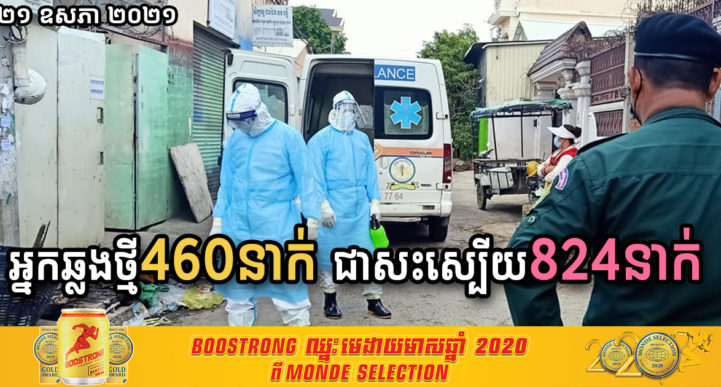 នៅថ្ងៃទី២១ ខែឧសភា ឆ្នាំ២០២១នេះ ក្រសួងសុខាភិបាលកម្ពុជា បានចេញសេចក្តីជូនដំណឹងពី ការរកឃើញករណីវិជ្ជមានវីរុសកូវីដ១៩ថ្មី ៤៦០ចំនួន នាក់ ខណៈអ្នកបានជាសះស្បើយថ្មីមានចំនួន ៨២៤នាក់ និងមានអ្នកបាត់បង់ជីវិត០១នាក់។ គិតមកទល់ពេលនេះ ករណីឆ្លងកូវីដ១៩ សរុបនៅក្នុងប្រទេសកម្ពុជា មានចំនួន ២៤,១៥៧នាក់, ករណីជាសះស្បើយសរុប ១៦,៥២៤នាក់ និងស្លាប់សរុប ១៦៥នាក់៕