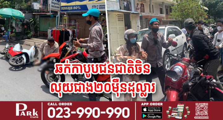 រាជធានីភ្នំពេញ៖ យោងតាមការបញ្ជាក់ពី ការិយាល័យព្រហ្មទណ្ឌកម្រិតធ្ងន់ បានឲ្យដឹងថា កាលពីថ្ងៃ១៨ ខែឧសភា ឆ្នាំ២០២១ វេលាម៉ោងប្រហែល ១៥៖៣០នាទី នៅមុខផ្សារផេនស៊ល ផ្លូវ២១៤ សង្កាត់បឹងរាំង ខណ្ឌដូនពេញ រាជធានីភ្នំពេញ មានករណីលួចមានស្ថានទម្ងន់ទោស (ឆក់) ជនជាតិ ចិន បង្កដោយជនសង្ស័យចំនួន០២នាក់ ប្រើប្រាស់មធ្យោបាយម៉ូតូ២គ្រឿងម៉ាក Nex ស៊េរីឆ្នាំ២០២០ ពណ៌ទឹកប្រាក់ គ្មានស្លាកលេខ និងម៉ាក់ ហុងដា ឃ្លីក សេរីឆ្នាំ២០២០ ពណ៌ខ្មៅ គ្មានស្លាកលេខ បានសម្រេចរួចគេចខ្លួនបាត់តែម្តង។ ក្រោយពីទទួលបានពាក្យបណ្តឹងពីជនរងគ្រោះ នាយកដ្ឋាននគរបាលព្រហ្មទណ្ឌ បានធ្វើការស្រាវជ្រាវ