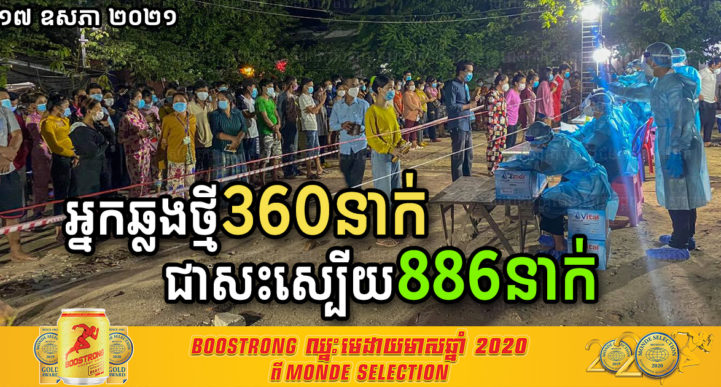 នៅថ្ងៃទី១៧ ខែឧសភា ឆ្នាំ២០២១នេះ ក្រសួងសុខាភិបាលកម្ពុជា បានចេញសេចក្តីជូនដំណឹងពី ការរកឃើញករណីវិជ្ជមានវីរុសកូវីដ១៩ថ្មី ៣៦០ចំនួន នាក់ ខណៈអ្នកបានជាសះស្បើយថ្មីមានចំនួន ៨៨៦នាក់ និងមានអ្នកបាត់បង់ជីវិត០៤នាក់៕