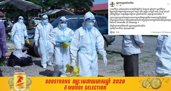 យោងតាមការបញ្ជាក់ពី រដ្ឋបាលក្រុងប៉ោយប៉ែត បានឲ្យដឹងថា នៅវេលាម៉ោង ៦ និង០០នាទីព្រឹកថ្ងៃទី១៣ ខែឧសភា ឆ្នាំ២០២១ អ្នកជំងឺមានវិជ្ជមានកូវីដ១៩ ម្នាក់ទៀតបានស្លាប់ ឈ្មោះ យឹម យឿន ភេទស្រី អាយុ៧០ឆ្នាំ រស់នៅភូមិគីឡូម៉ែត្រ៤ សង្កាត់ផ្សារកណ្តាល ក្រុងប៉ោយប៉ែត ខេត្តបន្ទាយមានជ័យ។ នេះជាករណីទី៤ហើយ ដែលមានប្រជាពលរដ្ឋបាត់បង់ជីវិត ដោយសារជំងឺកូវីដ១៩ នៅក្រុងប៉ោយប៉ែត។ រដ្ឋបាលក្រុងសូមសំដែងនូវការសោកស្តាយនិងចូលរួមរំលែកមរណទុក្ខដ៏ក្រៀមក្រំជាមួយគ្រួសារនៃសព និងសូមអំពាវនាវដល់បងប្អូនប្រជាពលរដ្ឋទាំងអស់ចូលរួមអនុវត្តវិធានការ ៣ការពារ និង ៣កុំ ទាំងអស់គ្នា៕
