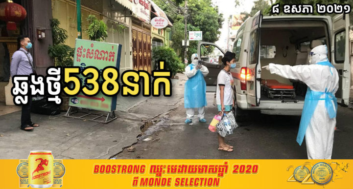 នៅថ្ងៃទី៨ ខែឧសភា ឆ្នាំ២០២១នេះ ក្រសួងសុខាភិបាលកម្ពុជា បានចេញសេចក្តីជូនដំណឹងពី ការរកឃើញករណីវិជ្ជមានវីរុសកូវីដ១៩ថ្មី ចំនួន ៥៣៨នាក់ ខណៈអ្នកបានជាសះស្បើយថ្មីមានចំនួន ៤៥៦នាក់ និងមិនមានអ្នកបាត់បង់ជីវិតនោះទេ៕