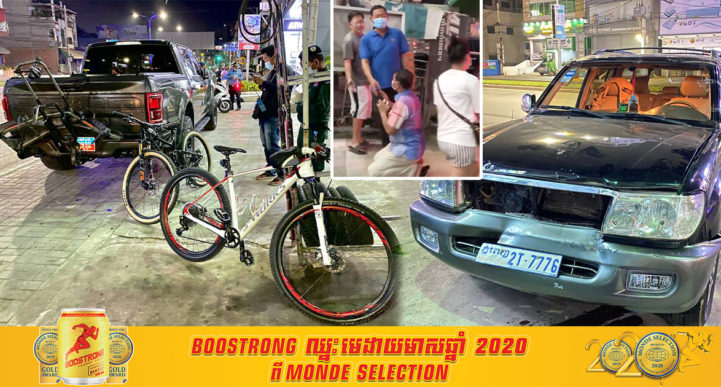 រាជធានីភ្នំពេញ ៖ សាច់ញាតិមកជួយដោះស្រាយសំពះសុំទោស ហើយលុតជង្គង់សុំសងត្រឹមតែ១ពាន់ដុល្លារ បន្ទាប់ពីបុរសម្នាក់បើករថយន្ត Land Cruiser ទៅបុកពីក្រោយរថយន្ត Ford Raptor ដែលកំពុងដឹកកង់សម្រាប់ជិះហាត់ប្រាណ២គ្រឿង (១គ្រឿងតម្លៃជាង១ម៉ឺនដុល្លារ និង១គ្រឿងទៀតជិត៤ពាន់ដុល្លារ) ខូចខាតយ៉ាងដំណំ ។ ហេតុការណ៍គ្រោះថ្នាក់ចរាចរណ៍នេះកើតឡើងកាលពីវេលាម៉ោង០៧:៤៥នាទីយប់ ថ្ងៃសៅរិ៍ ទី០៨ ខែឧសភា ឆ្នាំ២០២១នេះ នៅចំណុចមុខគ្រឹះស្ថានមីក្រូហិរញ្ញវត្ថុប្រាសាក់ លើផ្លូវជាតិលេខ១ ស្ថិតក្នុងភូមិដើមស្លែង សង្កាត់ច្បារអំពៅទី២ ខណ្ឌច្បារអំពៅ រាជធានីភ្នំពេញ ។ បើតាមសម្ដីស្ត្រីជាប្រពន្ធភាគីខាងរថយន្ត Ford Raptor បាននិយាយប្រាប់អ្នកយកព័ត៌មានខ្មែរណូតយើងថា នៅមុនពេលកើតហេតុ គាត់រួមទាំងប្ដីរបស់គាត់ជាអ្នកបើករថយន្តមួយគ្រឿង ម៉ាក