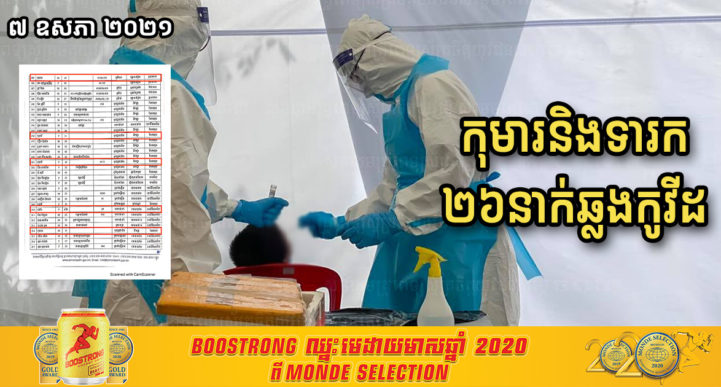នៅថ្ងៃទី៧ ខែឧសភា ឆ្នាំ២០២១នេះ ក្រសួងសុខាភិបាលកម្ពុជា បានចេញសេចក្តីជូនដំណឹងពី ការរកឃើញករណីវិជ្ជមានវីរុសកូវីដ១៩ថ្មី ចំនួន ៥៥៨នាក់ ខណៈអ្នកបានជាសះស្បើយថ្មីមានចំនួន ៤១នាក់ ក្នុងនោះមានករណីនាំចូល០១នាក់ផងដែរ និងមិនមានអ្នកបាត់បង់ជីវិតនោះទេ។ រូបតំណាង នាល្ងាចថ្ងៃទី៦ ខែឧសភា ឆ្នាំ២០២១ រដ្ឋបាលរាជធានីភ្នំពេញ បានធ្វើការបង្ហាញអត្តសញ្ញាញរបស់អ្នកជំងឺកូវីដ១៩ នៅក្នុងរាជធានីភ្នំពេញ ចំនួន ៤៤៥នាក់ ហើយនៅក្នុងនោះផងដែរ ក៏មានកុមារតូចៗ និងទារដែលបានឆ្លងកូវីដ១៩ រហូតដល់ទៅ២៦នាក់ ដែលមានដូចខាងក្រោម៖