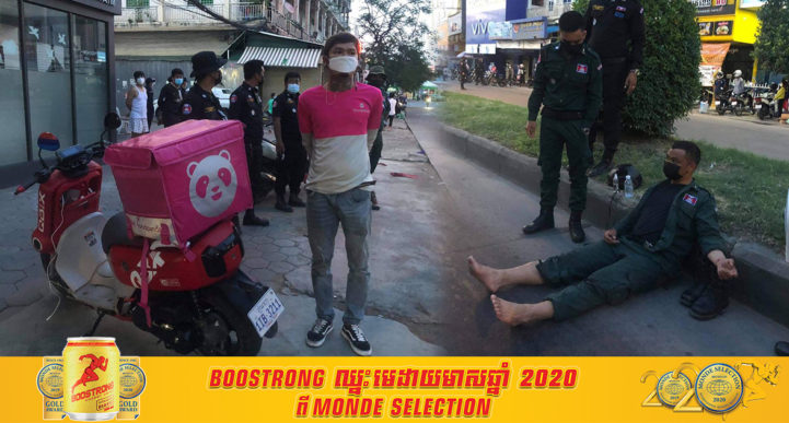 រាជធានីភ្នំពេញ៖ បុគ្គលិកដឹកជញ្ជូនអាហាររបស់ក្រុមហ៊ុន Foodpanda ម្នាក់បានបើកម៉ូតូគេចប៉ារាស់ត្រួតពិនិត្យរបស់សមត្ថកិច្ច ហើយបានជិះទៅបុកសមត្ថកិច្ចម្នាក់ ដែលកំពុងបំពេញតួនាទី បណ្តាលឲ្យដួលបោកនឹងថ្នល់រងរបួស។ ហេតុការណ៍នេះកើតឡើងកាលពីវេលា ៦ និង១៥នាទីល្ងាច ថ្ងៃទី០២ ខែឧសភា ឆ្នាំ២០២១នេះ នៅចំណុចផ្លូវ២១៧ ច្រមុះជ្រូកស្ទឹងមានជ័យ សង្កាត់ស្ទឹងមានជ័យ ខណ្ឌមានជ័យ រាជធានីភ្នំពេញ។ សមត្ថកិច្ចដែលរងរបួសនោះមានឈ្មោះ សុត ពន្លឺ បានរងរបួសជើង ត្រូវបានបញ្ចូនទៅសង្គ្រោះនៅឯមន្ទីរសម្រាកព្យាបាល ម្លិះដង្កោ។ ចំណែកឯអ្នកដឹកអាហារនោះមានឈ្មោះ រត្ន័ ភេទប្រុស អាយុជាង ២០ ឆ្នាំ ជាបុគ្គលិក foodpanda។ បច្ចុប្បន្នអ្នកបេីកម៉ូតូបង្ក ត្រូវសមត្ថកិច្ចឃាត់ខ្លួនបញ្ជូនទៅប៉ុស្តិ៍នគរបាលស្ទឹងមានជ័យ៣