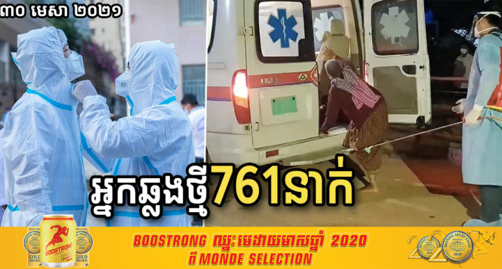 នៅថ្ងៃទី៣០ ខែមេសា ឆ្នាំ២០២១នេះ ក្រសួងសុខាភិបាលកម្ពុជា បានចេញសេចក្តីជូនដំណឹងពី ការរកឃើញករណីវិជ្ជមានវីរុសកូវីដ១៩ថ្មី ចំនួន ៧៦១នាក់ និងមានករណីជាសះស្បើយថ្មីចំនួន ១៦៦នាក់ផងដែរ។ យោងតាមសេចក្តីប្រកាសរបស់ក្រសួងសុខាភិបាល បានបញ្ជាក់ថា អ្នកវិជ្ជមានទាំង ៧៦១នាក់ ក្នុងនោះមាន១នាក់ ជាអ្នកដំណើរចូលមកកម្ពុជា និង ៧៦០នាក់ទៀតជាអ្នកពាក់ព័ន្ធព្រឹត្តិការណ៍ សហគមន៍២០កុម្ភៈ។ សូមអានសេចក្តីជូនព័ត៌មាននៅខាងក្រោម៖