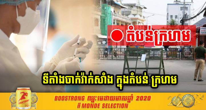 យោងតាមលិខិតរដ្ឋបាលរាជធានីភ្នំពេញ នៅយប់ថ្ងៃទី២៩ ខែមេសា ឆ្នាំ២០២១ បានប្រកាសជូនដំណឹងដល់បងប្អូនប្រជាពលរដ្ឋដែលកំពុងរស់នៅក្នុងតំបន់ក្រហម ទាក់ទងទៅនឹងទីតាំងដែលត្រូវចាក់វ៉ាក់សាំងកូវីដ-១៩ ដែលនឹងរៀបចំឡើងដោយក្រុមគ្រូពេទ្យយោធា នៃកងយុទ្ធពលខេមរភូមិន្ទ ចាប់ពីថ្ងៃទី១ ខែឧសភា ឆ្នាំ២០២១នេះតទៅ។ អាស្រ័យដូចនេះចំពោះអ្នករស់នៅក្នុងតំបន់ក្រហម សូមអានតារាងខាងក្រោមនេះដើម្បីធ្វើការចាក់វ៉ាក់សាំងទាំងដូសទី១ និងដូសទី២ ទាំងអស់គ្នា៕