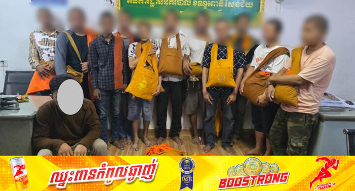 រាជធានីភ្នំពេញ៖ យោងតាមការចុះផ្សាយរបស់ អធិការដ្ឋាននគរបាលខណ្ឌពោធិ៍សែនជ័យ បានឱ្យដឹងថា នៅព្រឹកថ្ងៃទី១៩ ខែឧសភា ឆ្នាំ២០២៤ ក្រោមការចង្អុលបង្ហាញពី ឯកឧត្ដម ឧត្ដមសេនីយ៍ឯក ជួន ណារិន្ទ អគ្គស្នងការរងនិងជាស្នងការនគរបាលរាជធានីភ្នំពេញ បានដឹកនាំកម្លាំងចុះល្បាតពួនស្ទាក់ ដើម្បីបង្ការបង្ក្រាបបទល្មើស ឆក់ ប្លន់ លួច ក្មេងទំនើង នានា ក្នុងមូលដ្ឋានស្របពេលនោះក៏ប្រទះឃើញលោក សង្ឃក្លែងក្លាយចំនួន ១១នាក់ និងអ្នកបើកបររថយន្ត០១នាក់ ដែលបន្លំខ្លួនជាព្រះសង្ឃនិមន្តបិណ្ឌបាតតាមផ្ទះប្រជាពលរដ្ឋក្នុងខណ្ឌពោធិ៍សែនជ័យ។ ខណៈនោះលោក អធិការ បានបញ្ជាអោយនាំខ្លួនយកមកសួរនាំព្រមទាំងដកហូតវត្ថុតាំងរួមមាន៖ រថយន្តចំនួន ០១គ្រឿង, បាតសម្រាប់ដាក់បាយចំនួន០៤គ្រឿង, ម្សៅសក្រាមថ្លាសង្ស័យជាសារធាតុញៀនចំនួន១ បំពង់ទុយយោ, ស្បង់ជីវមួយចំនួន