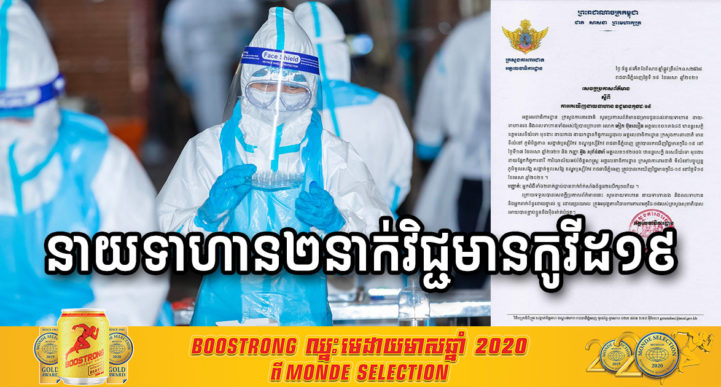 រាជធានីភ្នំពេញ៖ យោងតាមសារលិខិតរបស់ ក្រសួងការពារជាតិ បានប្រកាសពីការរកឃើញនាយទាហាន ២នាក់ថ្នាក់ឧត្តមសេនីយ៍ទោ និងថ្នាក់ វរសេនីយទោ មានវិជ្ជមានវីរុសកូវីដ-១៩។ ក្រសួងការពារជាតិ បានឲ្យដឹងថា លោក ភៀក ប៊ុនឈឿន ឋានន្តរសក្ដិ ឧត្តមសេនីយ៍ទោ មុខងារ នាយករង នាយកដ្ឋានកិច្ចការរដ្ឋបាល អគ្គលេខាធិការដ្ឋាន ក្រសួងការពារជាតិ មានទិលំនៅ ភូមិមិត្តភាព សង្កាត់ឬស្សីកែវ ខណ្ឌឬស្សីកែវ រាជធានីភ្នំពេញ ត្រូវបានរកឃើញវិជ្ជមានកូវីដ-១៩ នៅថ្ងៃទី១៧ ខែមេសា ឆ្នាំ២០២១ និងកញ្ញា អ៊ួង សុវ៉ាន់ដារ៉ា ឋានន្តរសក្ដិ វរសេនីយ៍ទោ