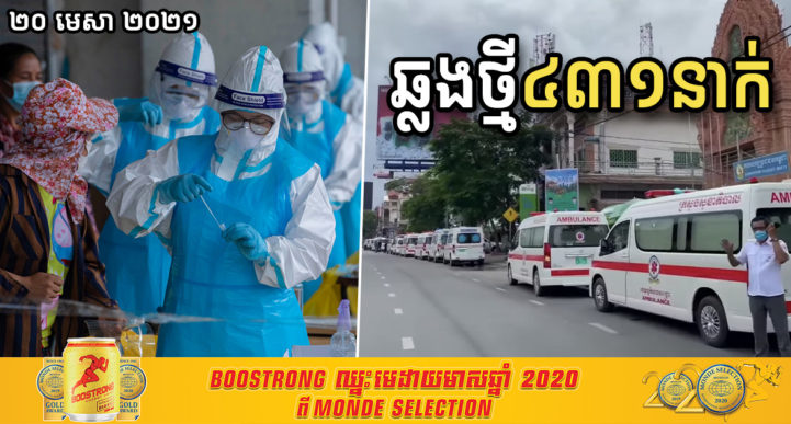 នៅព្រឹកថ្ងៃទី២០ ខែមេសា ឆ្នាំ២០២១នេះ ក្រសួងសុខាភិបាលកម្ពុជា បានចេញសេចក្តីជូនដំណឹងពី ការរកឃើញករណីវិជ្ជមានវីរុសកូវីដ១៩ថ្មី ចំនួន ៤៣១នាក់ និងមានករណីជាសះស្បើយថ្មីចំនួន៣១ នាក់ផងដែរ។ យោងតាមសេចក្តីប្រកាសរបស់ក្រសួងសុខាភិបាល បានបញ្ជាក់ថា អ្នកវិជ្ជមានទាំ៤៣១នាក់នោះ គឺមាន២នាក់ជាអ្នកដំណើរចូលមកកម្ពុជា និង ៤២៩នាក់ទៀតជាអ្នកពាក់ព័ន្ធព្រឹត្តិការណ៍ សហគមន៍២០កុម្ភៈ ទាំងអស់។ សូមអានសេចក្តីជូនព័ត៌មាននៅខាងក្រោម៖