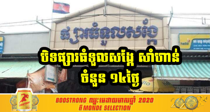 រដ្ឋបាលខណ្ឌឫស្សីកែវ ចេញសេចក្ដីជូនដំណឹង ស្តីពីការផ្អាកដំណើរការជាបណ្តោះអាសន្នមូលដ្ឋានផ្សារធំទួលសង្កែ(សាំហាន់)ក្នុងសង្កាត់ទួលសង្កែទី១ ខណ្ឌឫស្សីកែវ គិតចាប់ពីម៉ោង០០ និង០០នាទី ថ្ងៃទី១៩ ខែមេសា ឆ្នាំ២០២១ ដល់ថ្ងៃទី០២ ខែឧសភា ឆ្នាំ២០២១ ដើម្បីបង្ការ និងទប់ស្កាត់ការឆ្លងរីករាលដាលវីរុសកូវីដ១៩៕
