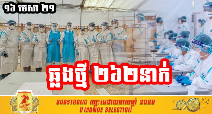 នៅព្រឹកថ្ងៃទី១៦ ខែមេសា ឆ្នាំ២០២១នេះ ក្រសួងសុខាភិបាលកម្ពុជា បានចេញសេចក្តីជូនដំណឹងពី ការរកឃើញករណីវិជ្ជមានវីរុសកូវីដ-១៩ថ្មី ចំនួន ២៦២នាក់ និងមានករណីជាសះស្បើយថ្មីចំនួន ៧៤នាក់ផងដែរ។ យោងតាមសេចក្តីប្រកាសរបស់ក្រសួងសុខាភិបាល បានបញ្ជាក់ថា អ្នកវិជ្ជមានទាំង ៣៤៤នាក់នោះ គឺសុទ្ធតែជាអ្នកពាក់ព័ន្ធព្រឹត្តិការណ៍ សហគមន៍២០កុម្ភៈទាំងអស់។ ក្នុងចំណោមអ្នកវិជ្ជមានទាំង២៦២នាក់ ក្នុងនោះមានអ្នកវិជ្ជមាននៅរាជធានីភ្នំពេញរហូតដល់ទៅ ២៣២នាក់ មានជនជាតិខ្មែរ ចំនួន ២៣០នាក់ ( ស្ត្រី១១៥នាក់ និងបុរស ១១៥នាក់) និងជនជាតិចិន ចំនួន០១នាក់ ជាបុរស និងជនជាតិវៀតណាម ០១នាក់ ជាបុរស៕