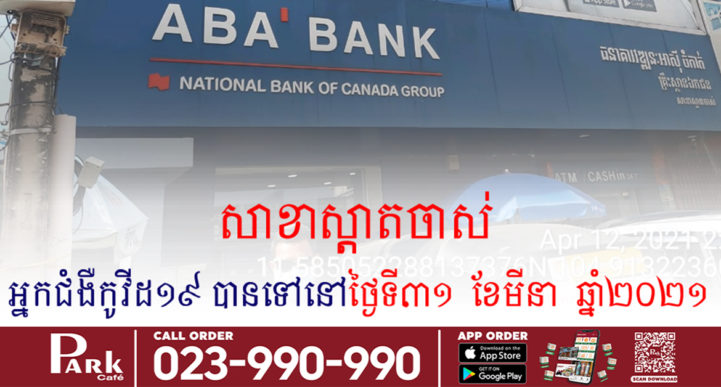 រាជធានីភ្នំពេញ៖ តាមការចុះផ្សាយរបស់ អនុគណៈកម្មការស្រាវជ្រាវជំងឺកូវីដ១៩ បានឲ្យចេញសេចក្ដីជូនដំណឹងដល់ប្រជាពលរដ្ឋ មេត្តាពាក់ម៉ាស់ រក្សាគម្លាត ពេលចេញទៅក្រៅ និងសូមអំពាវនាវដល់ប្រជាពលរដ្ឋ ដែលបានទៅប្រើសេវា និងបុគ្គលិកនៅធនាគារ ABA សាខាស្តាតចាស់ ផ្លូវ៧០ សង្កាត់ស្រះចក ខណ្ឌដូនពេញ (គម្រិតហានិភ័យ) នៅថ្ងៃទី៣១ ខែមីនា ឆ្នាំ២០២១ (ចូលម៉ោង ១១៖៣៩ នាទី -ចេញម៉ោង១២៖១១) ដោយមូលហេតុ៖ អ្នកជំងឺកូវីដ១៩ បានទៅប្រើសេវានៅខាងក្នុងនៃទីតាំងនេះ មានរយៈពេលយូរ ក្នុងទីកន្លែងប្រើម៉ាស៊ីនត្រជាក់ និងបិទជិត។ សូមដាក់ខ្លួនដាច់ដោយឡែក និងតាមដានសុខភាពរបស់ខ្លួនរយៈពេល ១៤ ថ្ងៃ តាមវិធានសុខាភិបាល