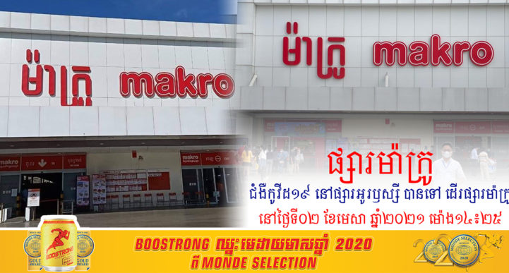 អនុគណៈកម្មការស្រាវជ្រាវ និងតាមដានបុគ្គលសង្ស័យថាមានផ្ទុកជំងឺកូវីដ១៩ នៅល្ងាចថ្ងៃទី១២ ខែមេសា ឆ្នាំ២០២១នេះ បានជូនដំណឹងនៅលើ Facebook ថា អ្នកកើតជំងឺកូវីដ១៩ ធ្លាប់បានទៅផ្សារទំនើបម៉ាក្រូ នៅវេលាម៉ោង២រសៀល ថ្ងៃទី០៤ ខែមេសា ឆ្នាំ២០២១កន្លងទៅ។ អនុគណៈកម្មការស្រាវជ្រាវ និងតាមដានបុគ្គលសង្ស័យថាមានផ្ទុកជំងឺកូវីដ១៩ បានបង្ហោះឲ្យដឹងថា៖ មេត្តាពាក់ម៉ាស់ រក្សាគម្លាត ពេលទៅផ្សារ និងសូមអំពាវនាវដល់ប្រជាពលរដ្ឋ ដែលជាអ្នកដើរផ្សារ និងបុគ្គលិកនៅ ផ្សារម៉ាគ្រូ (Makro) ⏰ នៅថ្ងៃទី០២ ខែមេសា ឆ្នាំ២០២១ ម៉ោង ១៤៖២៥ មូលហេតុ៖ អ្នកជំងឺកូវីដ១៩