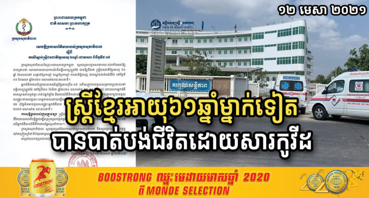 April 12, 2021 - កូវីដ-១៩ចូលរួមសោកស្តាយ! ស្ត្រីជនជាតិខ្មែរ អាយុ៦១ឆ្នាំម្នាក់ទៀតនៅរាជធានីភ្នំពេញ បានបាត់បង់ជីវិត ដោយសារតែកូវីដ