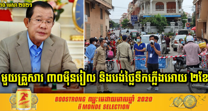 នៅព្រឹកថ្ងៃទី១០ ខែមេសា ឆ្នាំ២០២១ សម្តេចតេជោ ហ៊ុន សែន នាយករដ្ឋមន្ត្រីនៃព្រះរាជាណាចក្រកម្ពុជា បានអញ្ជើញថ្លែងសារពិសេសទាក់ទងនឹងស្ថានភាពជំងឺកូវីដ១៩ នៅព្រះរាជាណាចក្រកម្ពុជា។ ថ្លែងនៅក្នុងសារពិសេសនោះដែរ សម្តេចតេជោ បានមានប្រសាសន៍ថា ចំពោះគ្រួសារដែលត្រូវចត្តាឡីស័ក ក្នុងតំបន់បិទខ្ទប់ទាំងអស់ នឹងទទួលបានការឧបត្ថម្ភថវិកា ៣០ម៉ឺនរៀល ហើយរដ្ឋជួយបង់ថ្លៃទឹកភ្លើងអប្បបរមា សមរម្យមួយក្នុងរយៈពល២ខែ។ ក្រៅពីនោះដែរសម្តេចតេជោ ហ៊ុន សែន ក៏បានបញ្ជាក់ថែមទៀតថា ចំពោះគ្រួសារដែលត្រូវចត្តាឡីស័ក ហើយនៅក្រៅតំបន់បិទខ្ទប់ ក៏ទទួលបានការឧបត្ថម្ភថវិកា ៣០ម៉ឺនរៀល ហើយរដ្ឋជួយបង់ថ្លៃទឹកភ្លើងអប្បបរមា សមរម្យមួយក្នុងរយៈពល២ខែដូចគ្នា៕