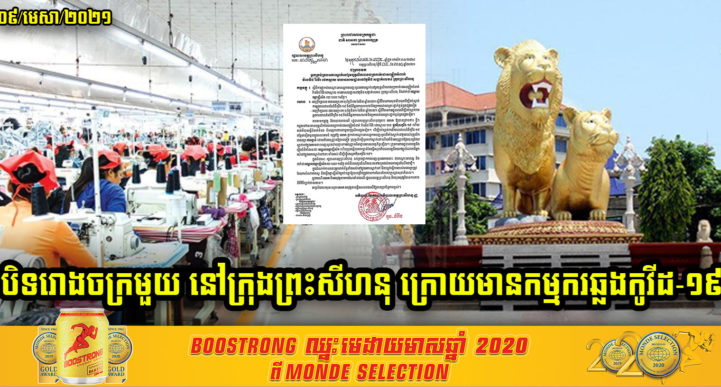 យោងតាមលិខិតមួយច្បាប់របស់រដ្ឋបាលខេត្តព្រះសីហនុ បានធ្វើការជម្រាបជូនទៅអ្នកគ្រប់គ្រង់អគារស្នាក់នៅរួមបុគ្គលិករោងចក្រកាត់ដេរសម្លៀកបំពាក់ វ៉ានធិជ រីវើរ ថេកស្ថាយ មានអាសយដ្ឋាននៅភូមិ៥ សង្កាត់លេខ៤ ក្រុងព្រះសីហនុ អោយធ្វើការផ្អាកបណ្តោះអាសន្នការចេញ-ចូលចំពោះអគារស្នាក់នៅរួមបុគ្គលិករោងចក្រ និងដាក់ជាមណ្ឌលចត្តាឡីស័ករយៈពេល១៤ថ្ងៃ។ លិខិតដដែលបានបន្តអោយដឹងថា ដោយសារថ្មីៗកន្លងទៅនេះមានបុគ្គលិកនៃរោងចក្រកាត់ដេរសម្លៀកបំពាក់ វ៉ានធិជ រីវើរ ថេកស្ថាយ មានផ្ទុកវីរុសកូវីដ-១៩ ហើយគាត់ក៏បានធ្វើទំនាក់ទំនងបំពេញការងារជាមួយបុគ្គលិកផ្សេងទៀត៕