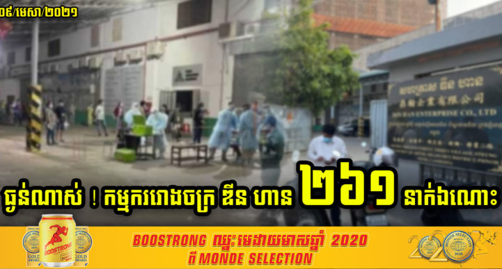 នៅមុននេះបន្តិចដែរ រដ្ឋបាលរាជធានីភ្នំពេញបានបង្ហាញអត្តសញ្ញាណ អ្នកដែលបានរកឃើញវិជ្ជមានកូវីដ-១៩ ទាក់ទងនឹងព្រឹត្តិការណ៍សហគមន៍២០កុម្ភៈ ដែលមានសរុប ២៦១នាក់ ដែលរកឃើញមានវិជ្ជមានកាលពីថ្ងៃទី០៨ ខែមេសា ឆ្នាំ២០២១។ ក្នុងនោះដែរគេសង្កេតឃើញថាមានកម្មការិនីរោងចក្រ ឌីន ហាន ចំនួន ២៦១នាក់បន្ថែមទៀតបានរកឃើញថាមានវិជ្ជមានវីរុសកូវីដ-១៩ សូមអានសេចក្តីជូនដំណឹងនៅខាងក្រោម៖