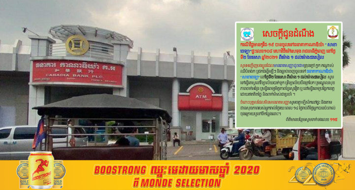 យោងតាមការបញ្ជាក់ពី នាយកដ្ឋានប្រយុទ្ធនឹងជំងឺឆ្លង បានឲ្យដឹងថា មានករណីវិជ្ជមានកូវីដ១៩ បានចូលទៅធនាគារកាណាឌីយ៉ា សាខាចេឡា ផ្ទះលេខ ១០៨ មហាវិថីម៉ៅសេទុង រាជធានីភ្នំពេញ នៅថ្ងៃទី២ ខែមេសា ឆ្នាំ២០២១ ពីម៉ោង ១ ដល់ម៉ោង ៥រសៀល។ នាយកដ្ឋានប្រយុទ្ធនឹងជំងឺឆ្លង សូមអញ្ជើញបងប្អូនដែលមានរោគសញ្ញាដូចជា៖ គ្រុនក្តៅ ក្អក កណ្តាស់ ឈឺបំពង់ក ឬដកដង្ហើមខ្លីៗ និងធ្លាប់ចេញចូលទៅធនាគារកាណាឌីយ៉ា សាខាចេឡា ពីថ្ងៃទី២ ខែមេសា ពីម៉ោង ១ ដល់ម៉ោង ៥រសៀល សូមអញ្ជើញទៅធ្វើតេស្តនៅមន្ទីរពេទ្យ ដែលបានកំណត់អនុញ្ញាតក្នុងរាជធានីភ្នំពេញ