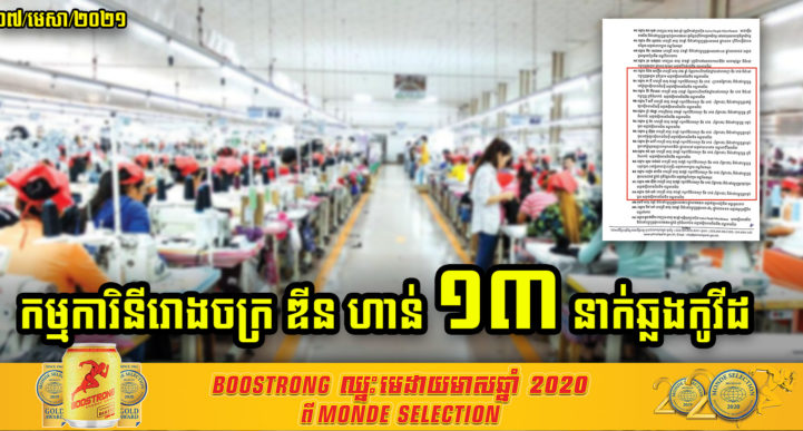 នៅមុននេះបន្តិចដែរ រដ្ឋបាលរាជធានីភ្នំពេញបានបង្ហាញអត្តសញ្ញាណ អ្នកដែលបានរកឃើញវិជ្ជមានកូវីដ-១៩ ទាក់ទងនឹងព្រឹត្តិការណ៍សហគមន៍២០កុម្ភៈ ដែលមានសរុប៧៨នាក់ ដែលរកឃើញមានវិជ្ជមានកាលពីថ្ងៃទី០៧ ខែមេសា ឆ្នាំ២០២១។ ក្នុងនោះដែរគេសង្កេតឃើញថាមានកម្មការិនីរោងចក្រ ឌីន ហាន់ ចំនួន១៣នាក់បានរកឃើញថាមានវិជ្ជមានវីរុសកូវីដ-១៩ ដោយក្នុងនោះមានជំនួយការបើកឥវ៉ាន់ឃ្លាំងចំនួន ០២នាក់ ប្រធានផ្នែកដេរ ០១នាក់ និងកម្មការិនីផ្នែកដេរចំនួន១០នាក់ផងដែរ៕