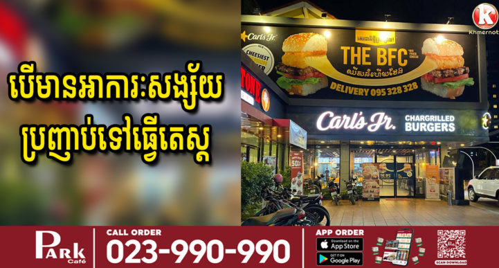 យោងតាមការបញ្ជាក់ពី អនុគណៈកម្មការស្រាវជ្រាវជំងឺកូវីដ១៩ បានចេញសេចក្តីជូនដំណឹងអំពាវនាវដល់ប្រជាពលរដ្ឋ ដែលធ្លាប់បានទៅហូប ឬមានទំនាក់ទំនងជាមួយបុគ្គលិកធ្វើការនៅហាង Carl’s Jr ស្ថិតនៅផ្ទះលេខ៥៥, ផ្លូវ៣១០ កែង ផ្លូវប៉ាស្ទរ័, សង្កាត់ បឹងកេងកង១ ខណ្ឌចំការមន នៅថ្ងៃទី ២១ ខែមីនា ឆ្នាំ២០២១ ម៉ោង ១៧៖៤០នាទី។ ប្រសិនបើមានអាការៈមិនស្រួលខ្លួន ឬ សង្ស័យ សូមមេត្តាប្រញាប់ ទៅធ្វេីតេស្តរកមេរោគ កូវីដ១៩ (COVID-19) ដែលមានទីតាំងនៅ វិទ្យាល័យបាក់ទូក វិទ្យាល័យបឹងត្របែក មណ្ឌលសុខភាពចាក់អង្រែក្រោម មន្ទីរពេទ្យខ្មែរ-សូវៀត និងមន្ទីរពេទ្យបង្អែកនៅតាមបណ្តាខេត្តនានា៕