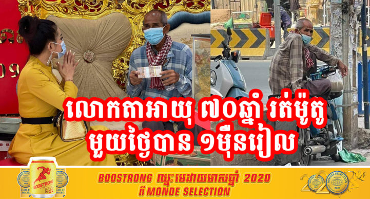 លោកតាអាយុប្រហែល 75ឆ្នាំ មានមុខរបររត់ម៉ូតូឌុប លោកតារត់ម៉ូតូឌុបនៅក្បែរ KOl សាលាវ៉ាន់ដា ផ្លូវម៉ៅសេទុង នៅក្នុងវិបត្តិកូវីដនេះលោកតាពិបាករកចំណូលខ្លាំងហើយ ឥលូវនេះអ្នកនាងទ្រីដាណា បានឧបត្ថម្ភជួយលោកតាដោយអ្នកនាងអញ្ជើញលោកតាមកផ្ទះនិងបានរៀបរាប់ថា៖ បានជួបលោកពូ ដែលរត់ម៉ូតូឌុបនោះហើយ។ អាណិតគាត់ណាស់ សួរទៅអាយុ ៧០ឆ្នាំ តែនៅរត់ម៉ូតូឌុប រកលុយបង់បន្ទប់ជួលគេ។ គាត់មានប្រពន្ធ កូន៣នាក់ទៀត តែជាអ្នកធ្វើការអនាម័យទាំងអស់។ ឥឡូវកូវីដចឹង គាត់រត់ឌុបអត់បានទេ គាត់បានមួយថ្ងៃ 1ម៉ឺនរៀលអីហ្នឹង មិនទាន់កាត់ថ្លៃសាំងផង😢😢😢 ខ្ញុំជួយដោះស្រាយជីវភាពគាត់ ៥លានរៀល និងអាហារគ្រឿងហូបចុកប្រើប្រាស់មួយចំនួន ដើម្បីគាត់ទុកប្រើ។ គាត់នៅរត់ឌុបម្ដុំសាលាវ៉ាន់ដា បើមានឥវ៉ាន់អី រកគាត់ដឹកទៅ។ កុំភ្លេចការពារខ្លួនពីកូវីដផងបងប្អូន សង្ឃឹមថាវានឹងវិនាសរលាយបាត់ឆាប់ៗ