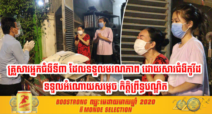នាយប់ថ្ងៃទី ១៩ ខែមីនា ឆ្នាំ២០២១ លោក ឯក ឃុនដឿន អភិបាលខណ្ឌទួលគោក បានដឹកនាំក្រុមការងារ ចុះសួរសុខទុក្ខគ្រួសារសពលោក អ.ត្រី គឹម ឃីស៊ុន ស្ថិតនៅផ្ទះលេខ១៥ ផ្លូវ២៥៥ សង្កាត់បឹងសាឡាង ខណ្ឌទួលគោក រាជធានីភ្នំពេញ ដែលបានទទួលមរណភាពដោយជំងឺកូវីដ-១៩ និងបាននាំយកអំណោយរបស់ សម្ដេចកិត្ដិព្រឹទ្ធបណ្ឌិត ប៊ុន រ៉ានី ហ៊ុន សែន ប្រធានកាកបាទក្រហមកម្ពុជា រួមមាន ៖ ថវិកាចំនួន ៥.០០០.០០០ រៀល, អង្ករ ១៥០គីឡូក្រាម, មី