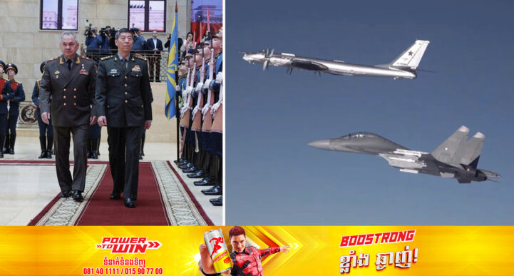 ក្រសួងការពារជាតិរុស្ស៊ី និងចិនបានប្រកាសថា យន្តហោះយោធារបស់ពួកគេបានធ្វើការល្បាតតាមអាកាសរួមគ្នាលើសមុទ្រជប៉ុន និងសមុទ្រចិនខាងកើត។ ក្រសួងការពារជាតិរុស្ស៊ីកាលពីថ្ងៃពុធបានចេញផ្សាយវីដេអូនៃយន្តហោះទម្លាក់គ្រាប់បែកយុទ្ធសាស្ត្ររបស់ប្រទេសទាំង ២ ដែលកំពុងហោះហើរនៅភាគខាងលិចប៉ាស៊ីហ្វិក នេះបើតាមនេះបើតាមការឱ្យដឹងពីទូរទស្សន៍ជប៉ុន NHK។ ក្រសួងបាននិយាយថា យន្តហោះទម្លាក់គ្រាប់បែកយុទ្ធសាស្ត្ររយៈចម្ងាយឆ្ងាយ Tupolev-95 របស់រុស្ស៊ី និងយន្តហោះចម្បាំង Sukhoi-35 និងយន្តហោះទម្លាក់គ្រាប់បែក Xian H-6K របស់ចិន និងយន្តហោះចម្បាំង Shenyang J-11B បានចូលរួមក្នុងការហោះហើរ ដែលមានរយៈពេលប្រហែល ៨ ម៉ោង។ ខ្លួនក៏បាននិយាយដែរថា យន្តហោះរុស្ស៊ីបានហោះឡើង និងចុះចតពីអាកាសយានដ្ឋានចិន។ ក្រសួងបាននិយាយថា យន្តហោះនៃប្រទេសទាំង ២ បានអនុវត្តយ៉ាងតឹងរ៉ឹងជាមួយនឹងច្បាប់អន្តរជាតិ ហើយថាមិនមានការរំលោភលើដែនអាកាសរបស់រដ្ឋបរទេសនោះទេ។