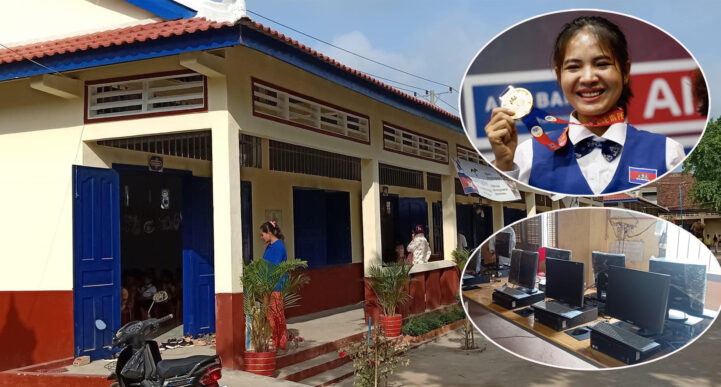 កីឡាការិនីជម្រើសជាតិកម្ពុជា ស្រួង ភាវី ដែលជាម្ចាស់មេដាយមាសលើវិញ្ញាសាប៊ីយ៉ាការ៉ុម ៣បាំង នៅក្នុងព្រឹត្តិការណ៍ស៊ីហ្គេមលើកទី៣២ ឆ្នាំ២០២៣ ថ្មីៗនេះបានជួយសាងសង់អាគារសិក្សា ១ខ្នង ដែលមាន ៤បន្ទប់ និងកុំព្យូទ័រចំនួន ១០គ្រឿង ដល់ សាលាបឋមសិក្សាមាន់ដប់ ស្រុកស្រីសន្ធរ ខេត្តកំពង់ចាម។ ជាមួយគ្នានេះ គាត់ក៏បានចែកសម្លៀកបំពាក់ ថ្នាំទម្លាក់សត្វល្អិតដល់សិស្សទាំងអស់ចំនួន ៦៤២នាក់ និងមាតាបិតាសិស្សចំនួន ១៨០ នាក់ផងដែរ នេះបើតាមការបង្ហោះដោយ ស្រុក ខ្ញុំ – Srok khnom ៕ ប្រភព៖ ស្រុក ខ្ញុំ –