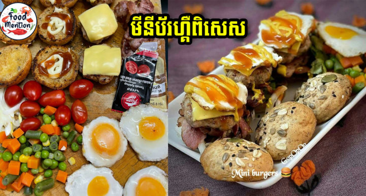 សួស្តីបងប្អូនទាំងអស់គ្នា ដែលនិយមចូលចិត្តទទួលទានប័រហ្គឺដោយសារតែបញ្ហាកូវិត ពិបាកចេញក្រៅទៅរកទិញមកទទួលទាននៅផ្ទះមែនទេ ទម្រាំតែមកដល់ផ្ទះក៏លែងឆ្ងាញ់ទៀតផង តោះលែងពិបាកទៀតហើយ ថ្ងៃនេះដែរយើងមានរូបមន្តវិធីធ្វើនំមីនីប័រហ្គឺរឺ កូនប័រហ្គឺ ងាយៗមកចែកជូនតោះយើងមកមើលគ្រឿងផ្សំនិងវិធីធ្វើទាំងអស់គ្នា៖ *គ្រឿងផ្សំ នំបុ័ងប័រហ្គឺតូចៗ ៣គូរ សាច់ជ្រូកចិញ្ច្រាំ ៤ស្លាបព្រាបាយ បេខន ៣បន្ទះ ពងមាន់ ១គ្រាប់ សេនតាឈីស ៣បន្ទះ បន្លែ តាមចំណូលចិត្ត ម៉ាយ៉ានែស ១ស្លាបព្រាបាយ ម៉ាសស្តាត ១ស្លាបព្រាបាយ ទឹកប៉េងប៉ោះ ២ស្លាបព្រាបាយ ខ្ទឹមបារាំង ២ស្លាបព្រាបាយ ខ្ទឹមបារាំង 1/2 ផ្លែ ប័រសាប ២ស្លាបព្រាបាយ