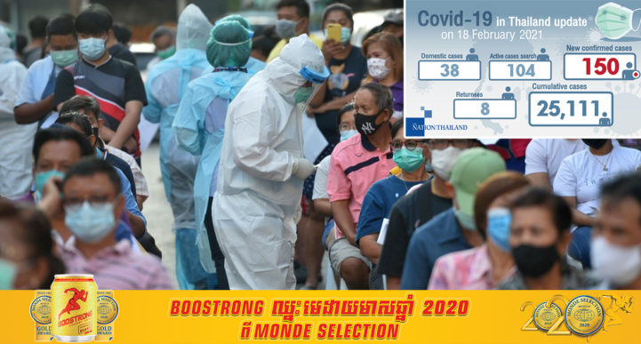 យោងតាមការចុះផ្សាយរបស់សារព័ត៌មាន The Nation Thailand នៅថ្ងៃព្រហស្បតិ៍ ទី១៨ ខែកុម្ភៈ ឆ្នាំ២០២១ បានរាយការណ៍ថា ប្រទេសថៃបានកត់ត្រាករណីជំងឺ COVID-19 ចំនួន ១៥០ករណី ដោយក្នុងនោះមាន ៨ករណី ជាការនាំចូលពីបរទេស។ ពុំមានការស្លាប់ថ្មីត្រូវបានគេរាយការណ៍នោះទេ ដែលធ្វើឱ្យករណីស្លាប់សរុបនៅតែមាន ៨២នាក់ ខណៈការឆ្លងសរុបចាប់តាំងពីជំងឺ COVID-19 មានវត្តមាននៅក្នុងប្រទេសថៃកាលពីឆ្នាំមុន បានកើនឡើងដល់ ២៥,១១១ ករណី។ ករណីជំងឺ COVID-19 សម្រាប់ប្រទេសថៃនៅថ្ងៃនេះគឺមានការចុះថយ ប៉ុន្តែភាគច្រើននៅតែត្រូវបានគេរកឃើញពីខេត្តសាមុតសាខន និងផាធុមថានី។ ក្នុងចំណោមករណីសរុបទាំងអស់មាន ២២,៤៤៦ នាក់ ជាករណីឆ្លងក្នុងតំបន់ ដែលក្នុងនោះមាន