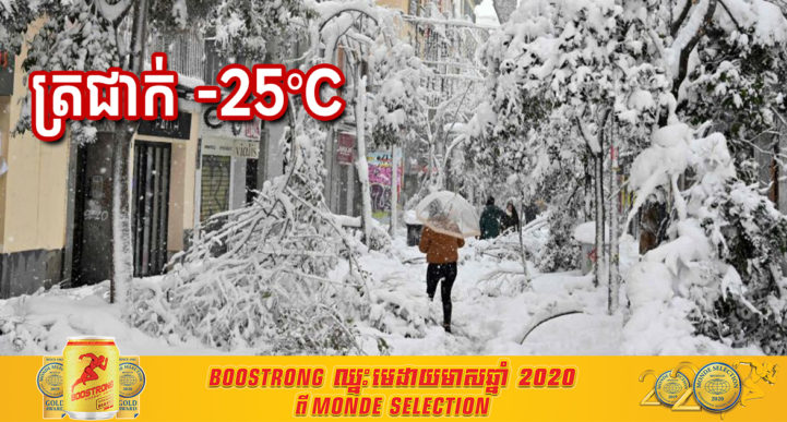 អេស្ប៉ាញ៖ យោងតាមសារព័ត៌មាន BBC បានឲ្យដឹងថា ប្រទេសអេស្ប៉ាញកំពុងតែប្រឈមនឹងបញ្ហាអាកាសធាតុចុះត្រជាក់ខ្លាំងបំផុតមិនធ្លាប់មានទាល់តែសោះនៅក្នុងរយៈពេល ២០ ចុងក្រោយនេះ ដោយតំបន់មួយចំនួនដូចជា តំបន់ Molina de Aragón Teruel ភាគខាងលិចរដ្ឋធានី Madrid សីតុណ្ហភាពបានចុះដល់កម្រិត -២៥ អង្សាសេឯណោះ។ ប្រភពខាងលើបានបន្តថា ខណៈពេលដែលសីតុណ្ណភាពបានចុះត្រជាក់ខ្លាំងព្រិលក៏បានធ្លាក់ចុះយ៉ាងច្រើនផងដែរ រហូតធ្វើឲ្យការធ្វើដំណើរតាមផ្លូវសំខាន់ៗមួយចំនួនរួមទាំងជើងហោះហើរខ្លះផងត្រូវបានខកខាន ឬពន្យាពេល។ សកម្មភាពកីឡា និងការជួបជុំជាលក្ខណៈសាធារណៈមួយចំនួនក៏ត្រូវលុបចោលផងដែរក្នុងរយៈពេលប៉ុន្មានថ្ងៃចុងក្រោយនេះ ព្រោះតែគេបារម្ភខ្លាចមានគ្រោះថ្នាក់ផ្សេងដល់ប្រជាពលរដ្ឋ។ បើតាមរបាយការណ៍បឋមរបស់អាជ្ញាធរអេស្ប៉ាញបានបង្ហាញថា គិតមកត្រឹមពេលនេះមានពលរដ្ឋអេស្ប៉ាញចំនួន ៧នាក់ ហើយដែលស្លាប់បាត់បង់ជីវិតព្រោះតែបញ្ហាប្រែប្រួលអាកាសធាតុនេះ ហើយនៅក្នុងចំណោមជនរងគ្រោះទាំង ៧ នាក់នោះ មាន ២