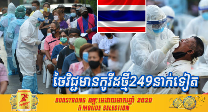 ថៃ៖ ប្រទេសថៃបានរកឃើញអ្នកជំងឺកូវីដ ១៩ ថ្មីចំនួន ២៤៥ ករណីបន្ថែមទៀតកាលពីថ្ងៃអាទិត្យទី ១០ ម្សិលមិញនេះ ខណៈថៃគ្មានករណីអ្នកស្លាប់ថ្មីនោះទេ នេះយោងតាមការចុះផ្សាយនៅក្នុងសារព័ត៌មាន បាងកកប៉ុស្តិ៍។ បើតាមការបញ្ជាក់របស់មជ្ឈមណ្ឌលគ្រប់គ្រងជំងឺឆ្លងថៃបានឲ្យដឹងថា ក្នុងចំណោមអ្នកឆ្លងថ្មីទាំងអស់នេះមាន ២២៤ ករណីគឺជាការចម្លងនៅក្នុងសហគមន៍ និង ២១ ករណីផ្សេងទៀតគឺជាករណីនាំចូលមកពីក្រៅប្រទេស។ ចំពោះករណីឆ្លងនៅក្នុងសហគមន៍គឺបានរកឃើញភាគច្រើននៅក្នុងខេត្តសាមុតសាខនមាន ៧៣ ករណី ក្នុងខេត្តជនបូរីមាន ៤៩ ករណី ក្នុងសាមុតប្រាកានមានចំនួន ២៣ ករណី ក្រុងបាងកកមាន ២២ ករណី ខេត្តរ៉ាយង់មានចំនួន ១៥ ករណី និងក្រៅពីនេះកើតមាននៅតាមបណ្តាខេត្តផ្សេងទៀតក្នុងចំនួនតិចតួច។