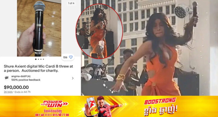 យោងតាមការចុះផ្សាយរបស់សារព័ត៌មាន USA Today បានរាយការណ៍ថា ម៉ៃក្រូហ្វូនដែលកំពូលតារាចម្រៀងរ៉េប Cardi B បានគប់ទៅលើហ្វូងអ្នកគាំទ្រ បន្ទាប់ពីបុគ្គលម្នាក់នោះបានជះភេសជ្ជៈដាក់គាត់ ត្រូវបានដាក់លក់ក្នុងតម្លៃជិត ១០០,០០០ ដុល្លារអាមេរិក ហើយចំណូលរបស់វានឹងត្រូវបរិច្ចាគទៅអង្គការមនុស្សធម៌។ លោក Scott Fisher ម្ចាស់ក្រុមហ៊ុន The Wave ដែលបានផ្តល់ម៉ៃក្រូហ្វូនសម្រាប់ការសម្តែងរបស់កំពូលតារាស្រី Cardi B បានដាក់លក់ម៉ៃក្រូហ្វូនមួយនោះនៅលើ eBay ដោយចាប់ផ្ដើមពីតម្លៃ ៩០,០០០ ដុល្លារអាមេរិក។ ការដេញថ្លៃម៉ៃក្រូហ្វូន Shure AD2 គ្រោងនឹងបញ្ចប់នៅថ្ងៃអង្គារសប្ដាហ៍ក្រោយ ហើយទទួលបានការដេញថ្លៃច្រើនជាង ១២០ ដង ដែលធ្វើឱ្យតម្លៃរបស់វាបានកើនដល់ ៩៩,៩០០ ដុល្លារអាមេរិក