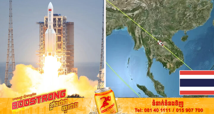 ទីភ្នាក់ងារអភិវឌ្ឍន៍បច្ចេកវិទ្យាអវកាស និងព័ត៌មានវិទ្យារបស់ថៃ (GISTDA) នៅថ្ងៃព្រហស្បតិ៍នេះ បានចេញសេចក្តីជូនដំណឹងដល់ខេត្តចំនួន ១១ របស់ខ្លួន ឱ្យមានការប្រុងប្រយ័ត្នចំពោះបំណែកគ្រាប់រ៉ុក្កែត ដែលអាចនឹងធ្លាក់ពីលើមេឃនៅថ្ងៃសៅរ៍ ទី០៥ ខែវិច្ឆិកា ខាងមុខនេះ។ អ្នកស្រាវជ្រាវជនជាតិថៃ និងជាអ្នកឯកទេសខាងមេកានិចគន្លងមកពី GISTDA គឺលោក Sittporn Chamnarnsin បានរាយការណ៍ថា រ៉ុក្កែតចិន Longmarch 5B-4Y ត្រូវបានគេរំពឹងថា នឹងធ្លាក់នៅថ្ងៃសៅរ៍នេះ។ ឥឡូវនេះ រ៉ុក្កែតកំពុងស្ថិតនៅក្នុងបរិយាកាសផែនដី ដែលមានចម្ងាយប្រហែល ១៧៧ គីឡូម៉ែត្រពីផ្ទៃដី។ គ្រាប់រ៉ុក្កែតទាំងមូលមានទម្ងន់ ២១.៦ តោន ប៉ុន្តែអ្នកជំនាញមិនរំពឹងថា គ្រាប់រ៉ុក្កែតនឹងធ្លាក់មកលើប្រទេសថៃទាំងព្រមនោះទេ