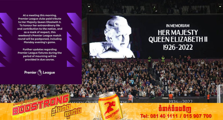 នៅថ្ងៃទី ៩ ខែកញ្ញា ឆ្នាំ ២០២២ យោងតាមសារព័ត៌មាន Thairath បានអោយដឹងថា៖ Premier League របស់អង់គ្លេសបានប្រកាសថា ការប្រកួតទី៧ ទាំងអស់ត្រូវបានពន្យាពេលសម្រាប់រដូវកាល ២០២២-២០២៣ នៅចុងសប្តាហ៍នេះ គឺចាប់ពីថ្ងៃទី ១០-១២ ខែកញ្ញា រួមទាំងហ្គេមទាំងអស់ដែលទទួលបន្ទុករបស់បាល់ទាត់ League អាជីពនៃអង់គ្លេស (EFL) និងសមាគមបាល់ទាត់អង់គ្លេស (FA) ក៏នឹងត្រូវផ្អាកជាបណ្តោះអាសន្នផងដែរ។ ដោយ Premier League បានប្រកាសថា ការប្រកួត Premier League នៅចុងសប្តាហ៍នេះនឹងត្រូវពន្យារពេលចេញទៅ ក៏ដើម្បីគោរពដល់ម្ចាស់ក្សត្រី