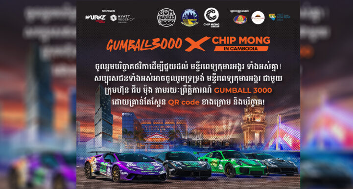 ភ្នំពេញ៖ Gumball 3000 ជាព្រឹត្តិការណ៍ប្រមូលផ្ដុំរថយន្ត Sport Cars, Super cars និងកំពូលរថយន្តប្រណិតៗ ពីសំណាក់ជនមានឥទ្ធិពល ធុរជន កីឡាករ និងកំពូលតារាលំដាប់ពិភពលោក ធ្វើដំណើរឆ្លងកាត់ពីទ្វីបមួយទៅមួយ។ នៅឆ្នាំ ២០២៤ នេះគឺជាខួបទី ២៥ នៃព្រឹត្តិការណ៍ Gumball 3000 ហើយព្រឹត្តិការណ៍នេះ ក៏នឹងមានការបើកឆ្លងកាត់ និងមានការរៀបចំព្រឹត្តិការណ៍ដ៏អស្ចារ្យនៅកម្ពុជាផងដែរ។ ព្រឹត្តិការណ៍ Gumball 3000 x Chip Mong នៅកម្ពុជានេះ នឹងរៀបចំឡើងរយៈពេល ៣ថ្ងៃ ចាប់ពីថ្ងៃទី១៥-១៧